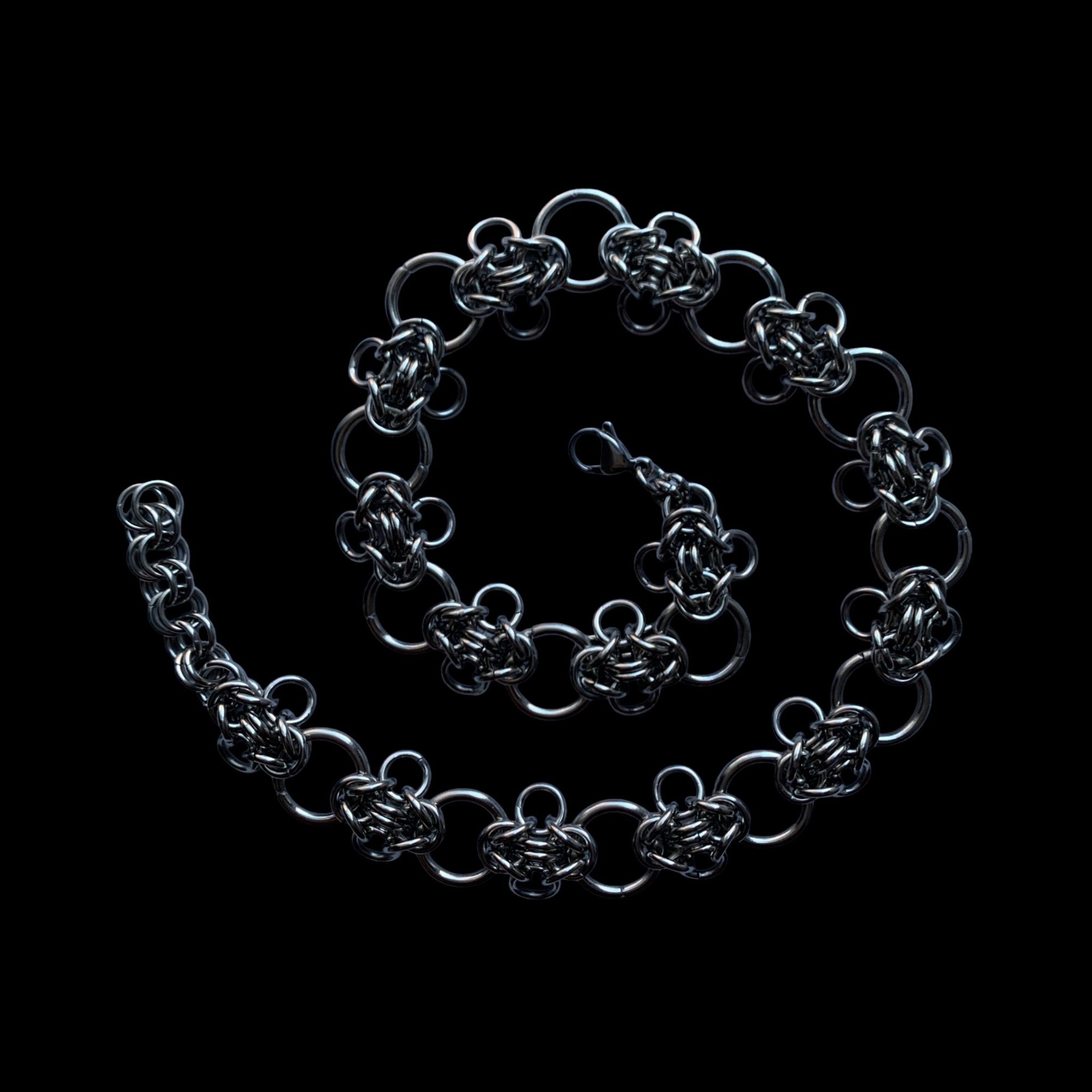 This product is handmade using Mixed Byzantine Chainmail weave. It is the same as the regular Temple, but the connecting rings are a smaller size.