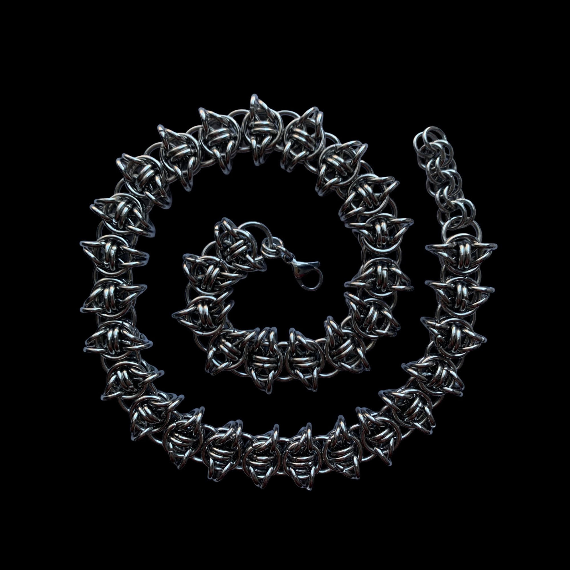 This product is handmade using Celtic visions Chainmail weave.